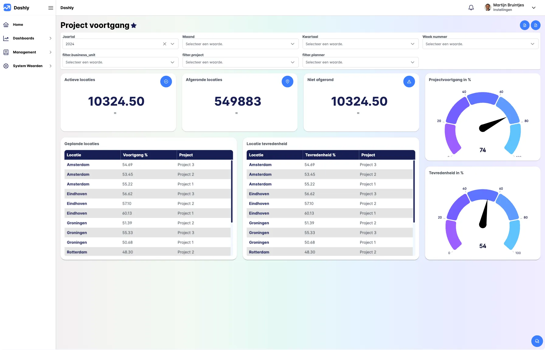 Projectvoortgang, recruitment prestaties en gezamenlijke KPI’s rapporteren – het is voor iedere organisatie essentieel. Met Dashly digitaliseer en automatiseer je deze processen, zodat opdrachtgevers en klanten altijd real-time inzicht hebben in de voortgang. Door klanten toegang te geven tot op maat gemaakte dashboards, verbeter je niet alleen de samenwerking, maar ook de klanttevredenheid.