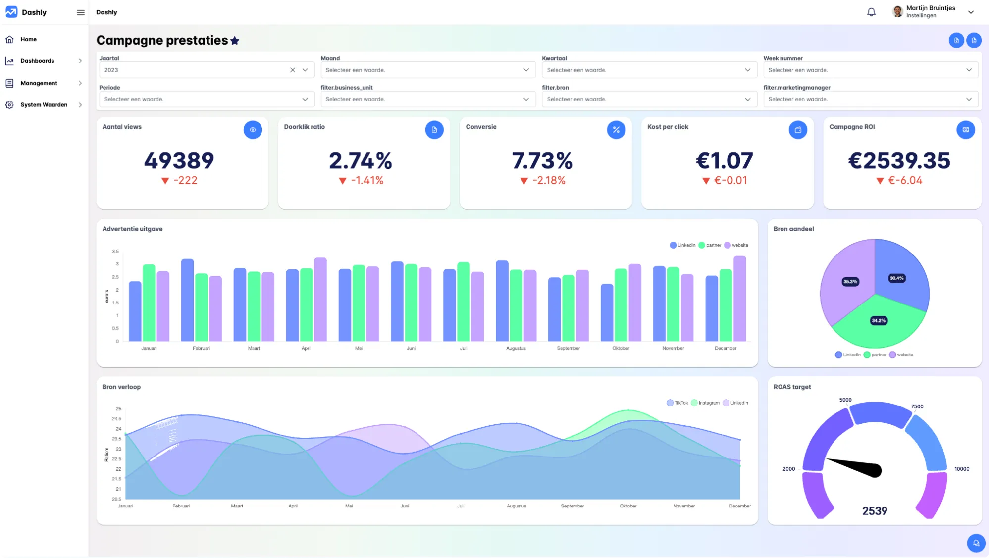 Jouw concurrenten zitten niet stil. Dashly helpt je om voorop te blijven lopen door inzicht te geven in welke kanalen het meest opleveren – van Google Ads en social media tot e-mailcampagnes en beurzen. Met Dashly weet je op welk kanaal je moet focussen om maximale impact te maken.