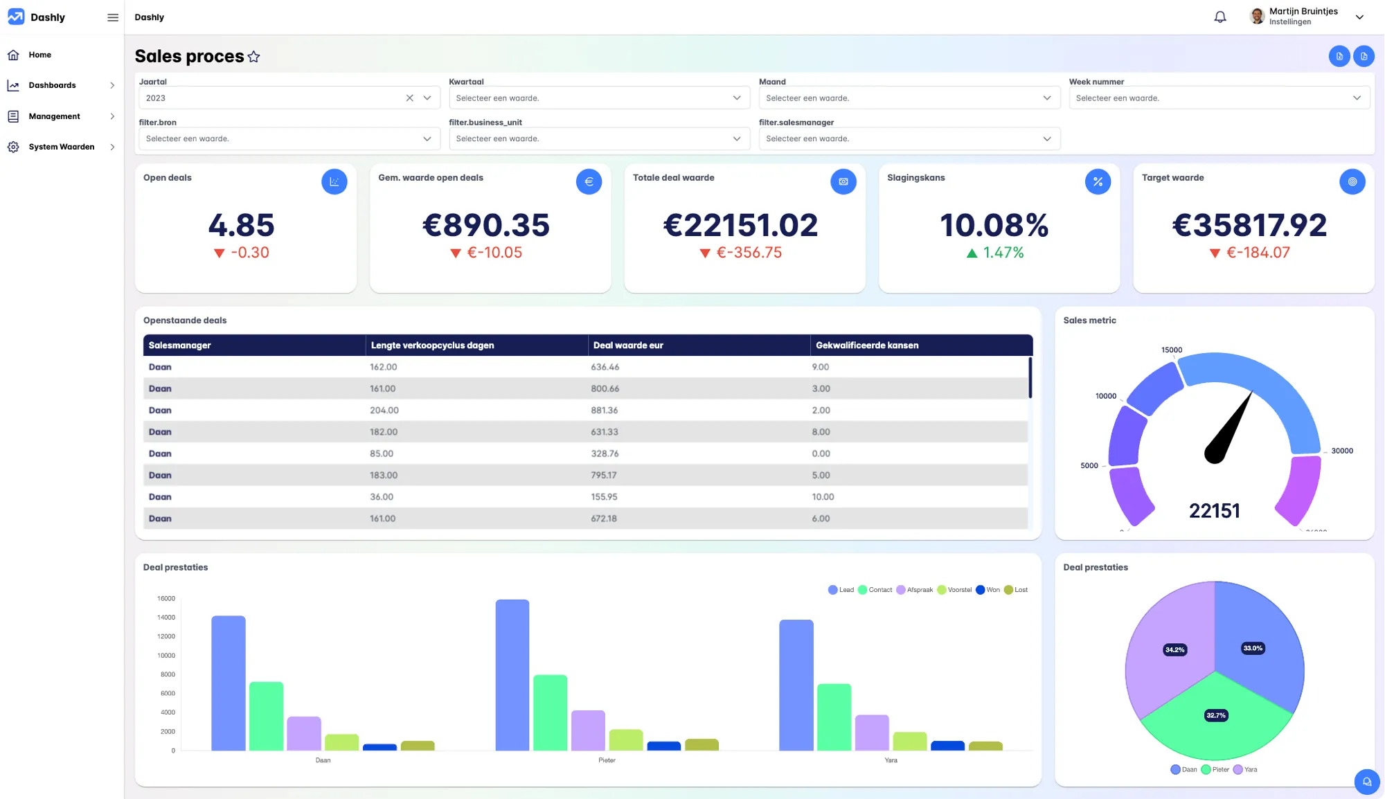 Dashly ondersteunt van begin tot eind. Tijdens ons eerste gesprek duiken we in jullie handmatige processen. Vaak rapporteer je intern en extern al veel meer dan je beseft. Naast het digitaliseren van deze processen kijken we, op basis van onze ervaring, naar mogelijkheden om inzichten een integraal onderdeel van jouw bedrijfscultuur te maken. Full service!